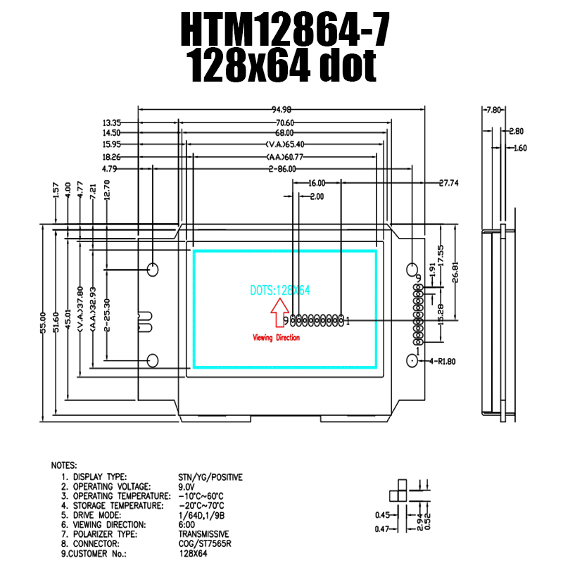 • Model : 128x64 LCM Graphic/HTM12864-7