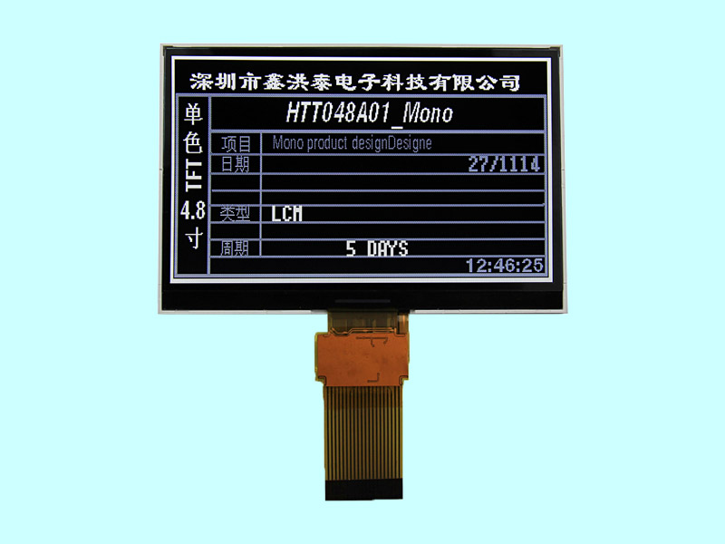 Location:Home  >  Product center  >  TFT display screen  >  An on-board & Special TFT Module  >  4.8寸單色TFT/400*240分辨率/高對(duì)比度/HTT048A01
