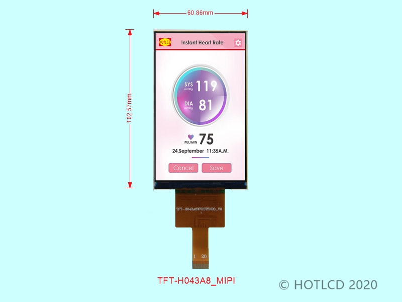 • Model : 4.3 inch TFT vertical screen, 480 * 800 resolution, IPS full view, Mipi interface, tft-h043a8wvist5n20