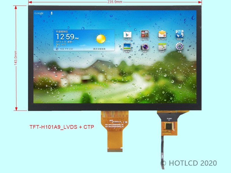 10.1 inch TFT with CTP | 1024 * 600 ips wide view | TFT - H101A9WSIFTKC40 an LVDS interface