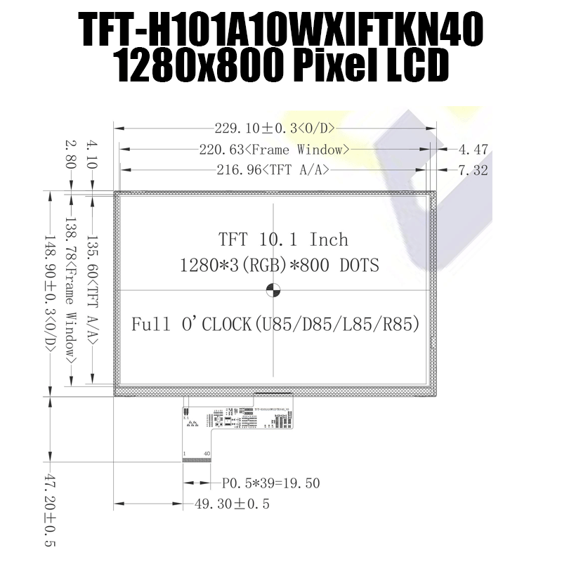 10.1-inch TFT horizontal screen|1280*800IPS wide viewing angle|LVDS interface|thickness 5.0 high brightness/TFT-H101A10WXIFTKN40image.png