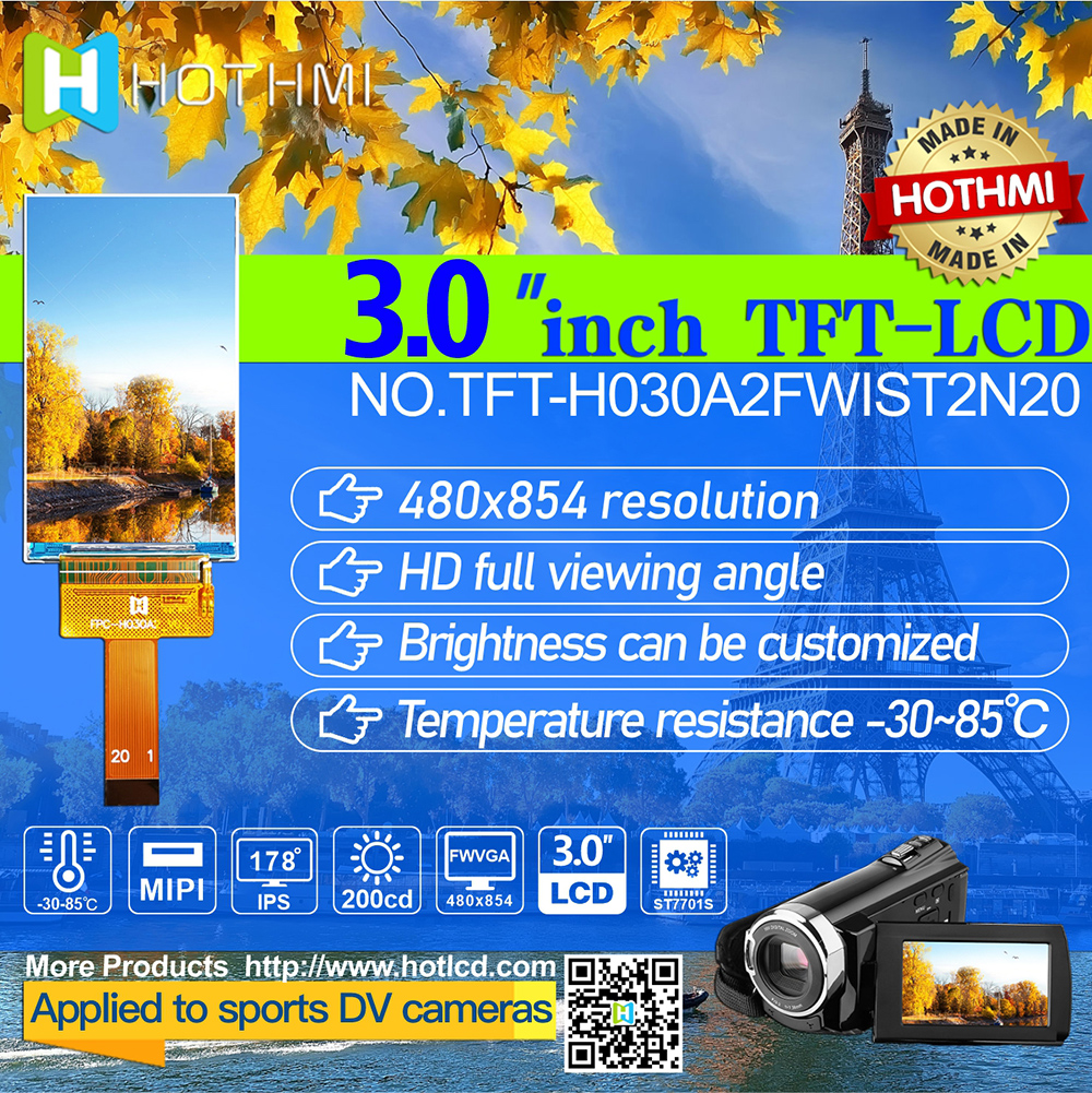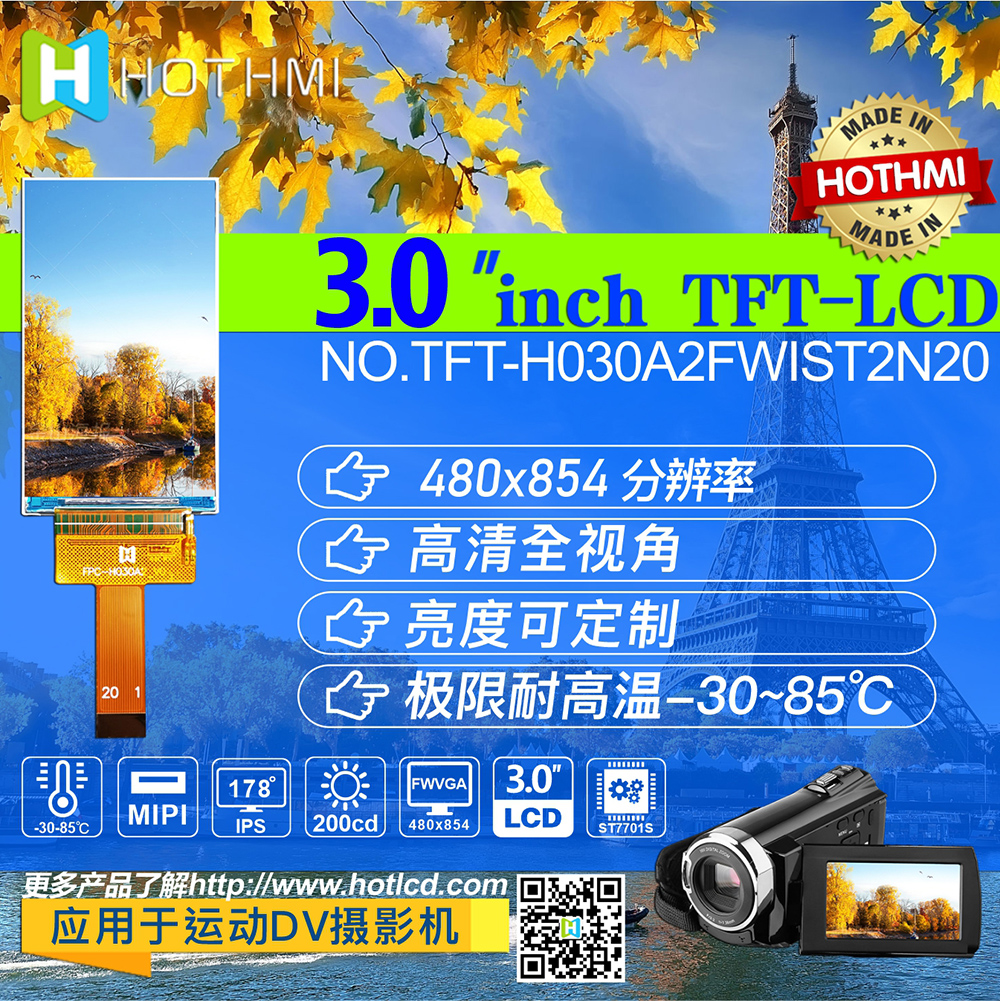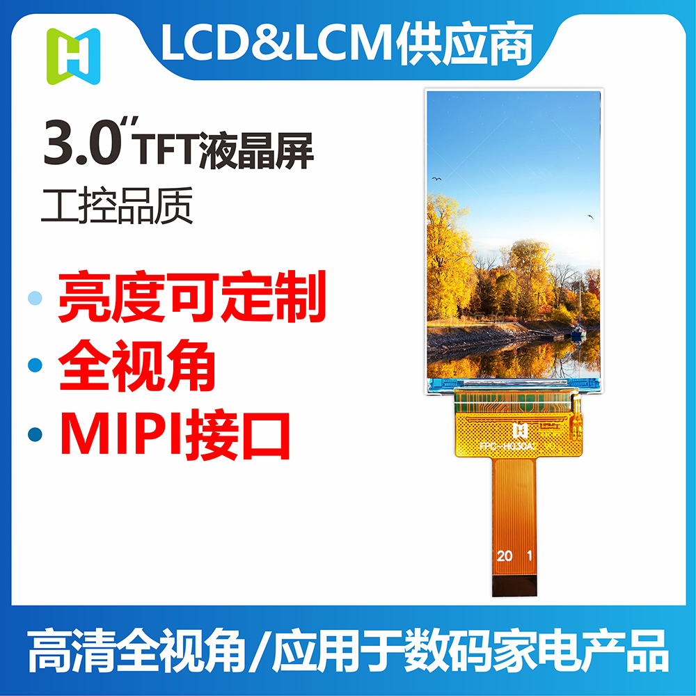 The TFT-H030A2FWIST2N20 is a 3.0-inch full-color TFT LCD module with a resolution of 480x854 pixels and an aspect ratio of 1:1.75. The TFT module adopts ST7701S driver IC and supports MIPI interface. The TFT module with IPS panel has the advantage of wide viewing angle (left 80 degrees/right 80 degrees/up 80 degrees/down 80 degrees), a typical contrast ratio of 800:1, and a module brightness of up to 200 nits (typical). The operating temperature range of the module is -30℃~+85℃, and the storage temperature range is -30℃~+85℃.