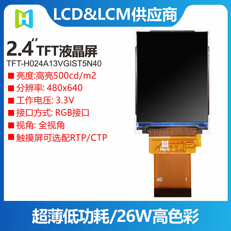 • Model : 2.4 inch TFT /480*640 resolution/Full view/RGB interface/TFT-H024A13VGIST5N40