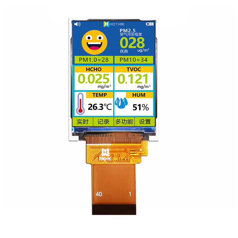 TFT-H024A13VGIST5N40 is a 2.4-inch TFT color LCD screen carefully designed by the HOTLCD R&D team, 480*640 resolution, high image quality, wide viewing angle, 16.7M high-definition color, brightness set to 500cd/m2, built-in ST7701S controller, support RGB interface , No peripheral circuit, 20PIN plug-in FPC can be connected to the main board (optional connector), single power supply DC 3.3V power supply. The TFT module can be equipped with a touch screen and all materials are RoHS compliant. Widely used in various instruments, smart devices, analytical instruments, handheld instruments, driving recorders, etc.: 8051, PIC, AVR, ARDUINO, ARM, Raspberry Pi, etc.