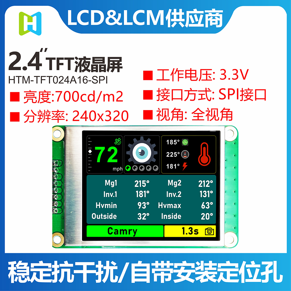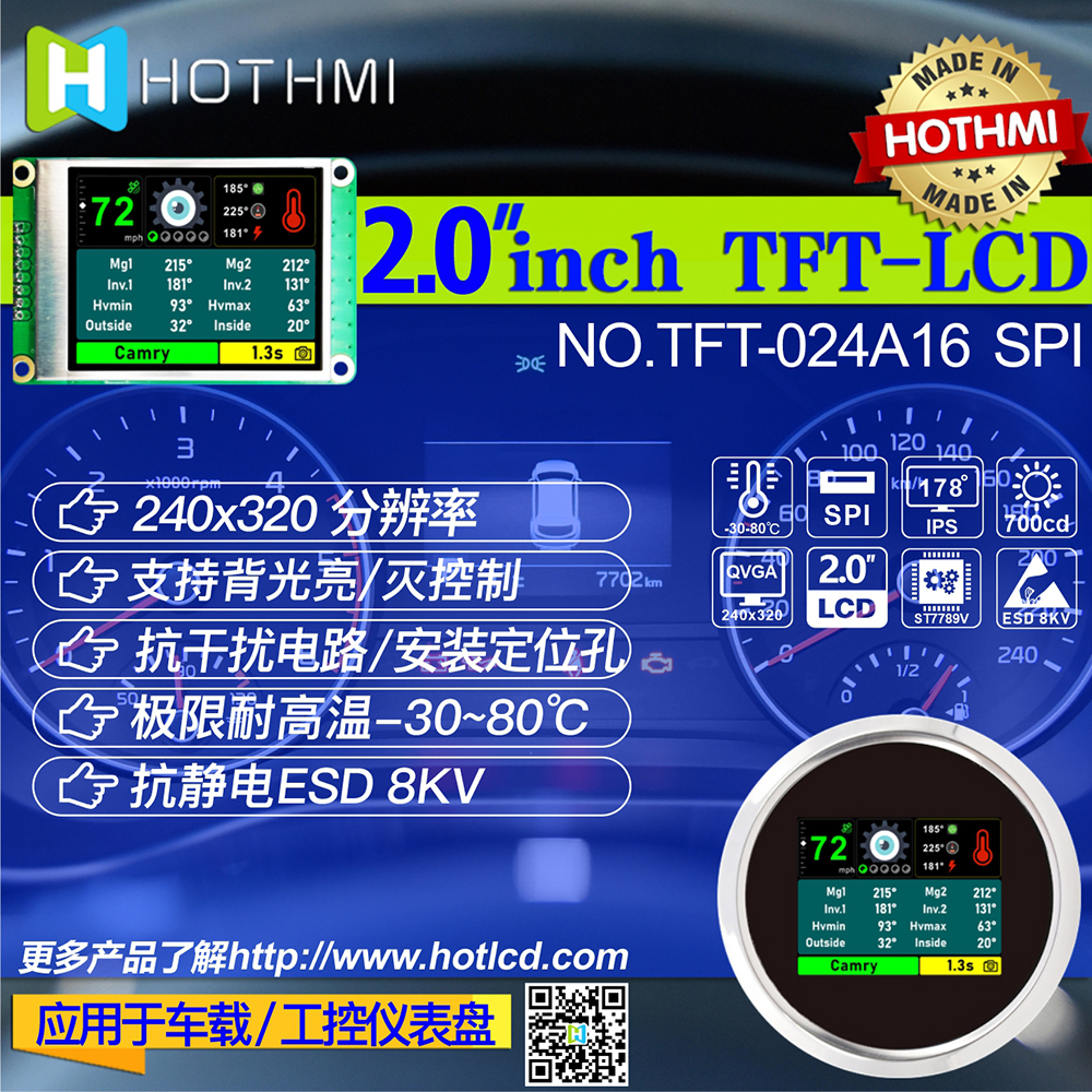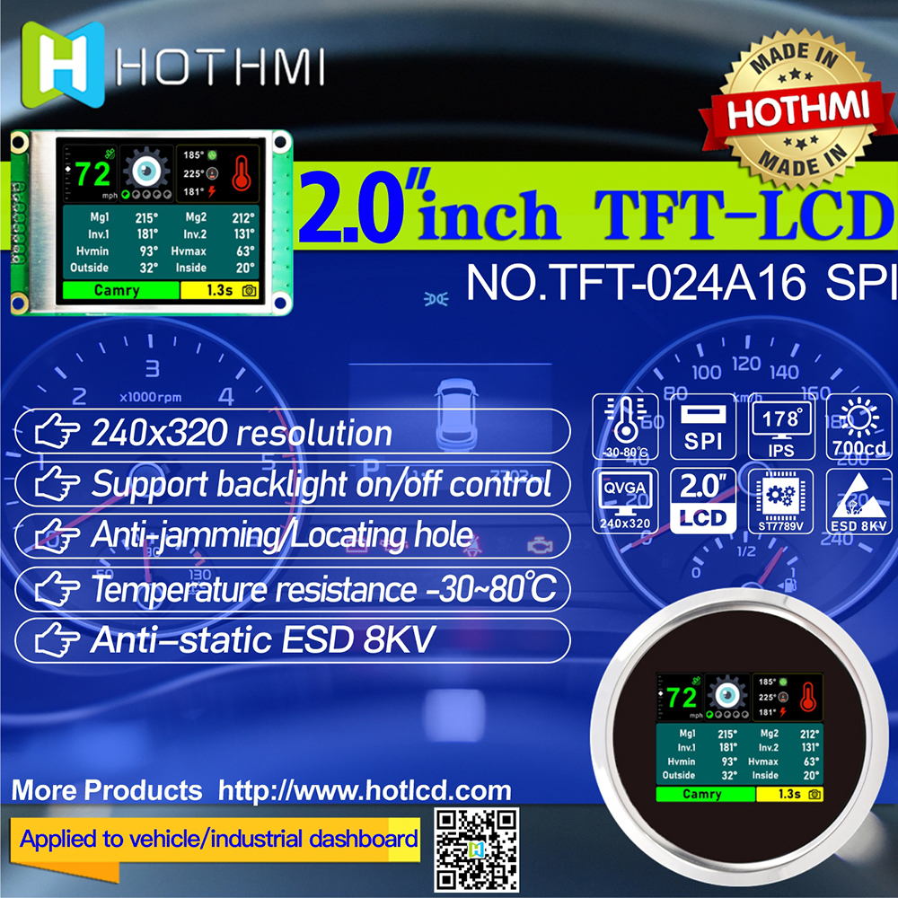 • Model : 2.4 inch TFT display module | 240X320 resolution | MCU SPI-4L interface | anti-static ESD 8KV | HTM-TFT024A16-SPI