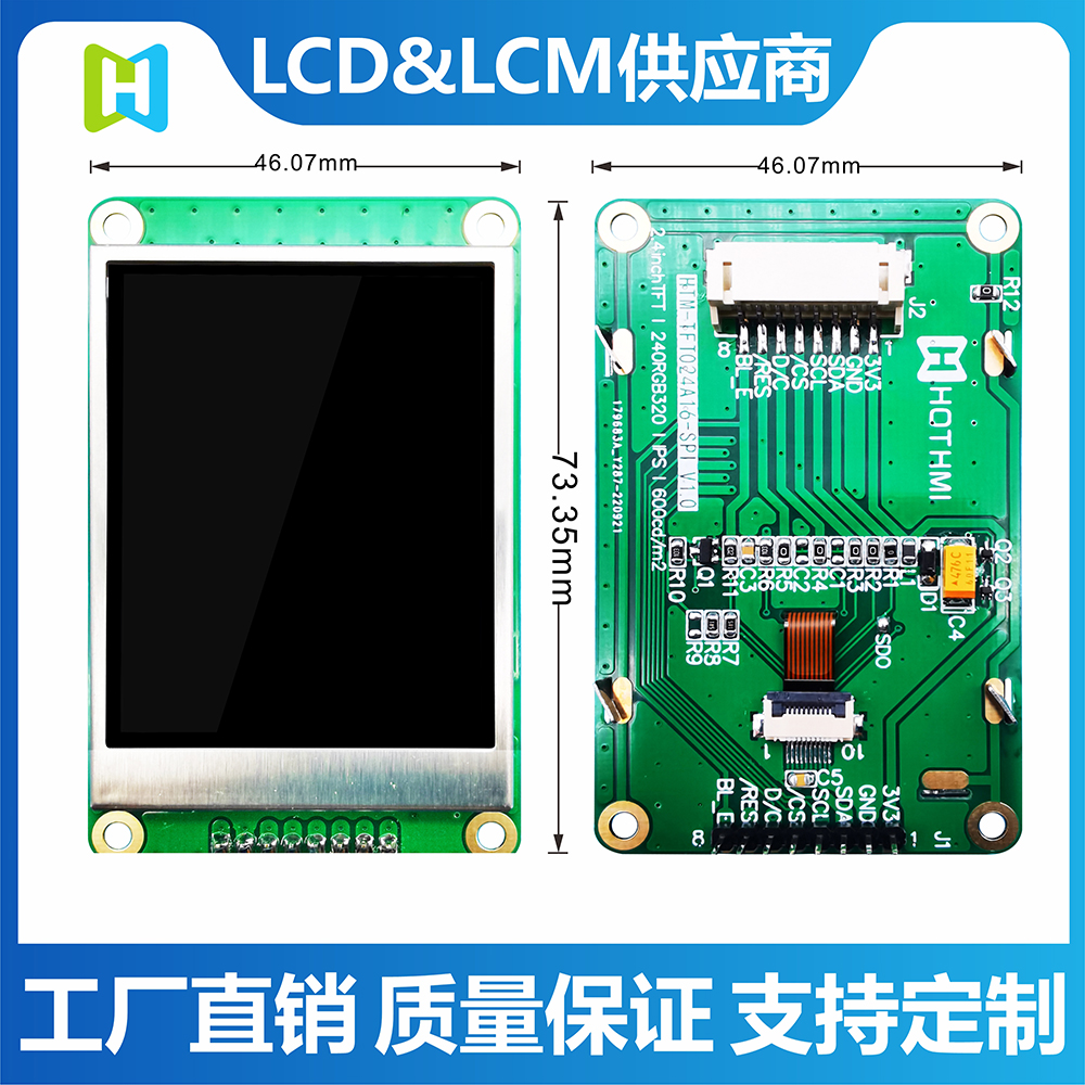 HTM-TFT024A16-SPI is a 2.4-inch TFT color LCD panel display screen carefully designed by HOTLCD R&D team, 240*320 resolution, high image quality, wide viewing angle, 65K/262K true color, built-in ST7789V controller, support MCU SPI-4L interface , 8PIN plug-in FPC can be connected to the motherboard (optional connector), single power supply DC 3.3V power supply. The TFT module can be equipped with a touch screen and all materials are RoHS compliant. Widely used in various instruments, smart devices, analytical instruments, handheld instruments, driving recorders, etc.: 8051, PIC, AVR, ARDUINO, ARM, Raspberry Pi, etc.