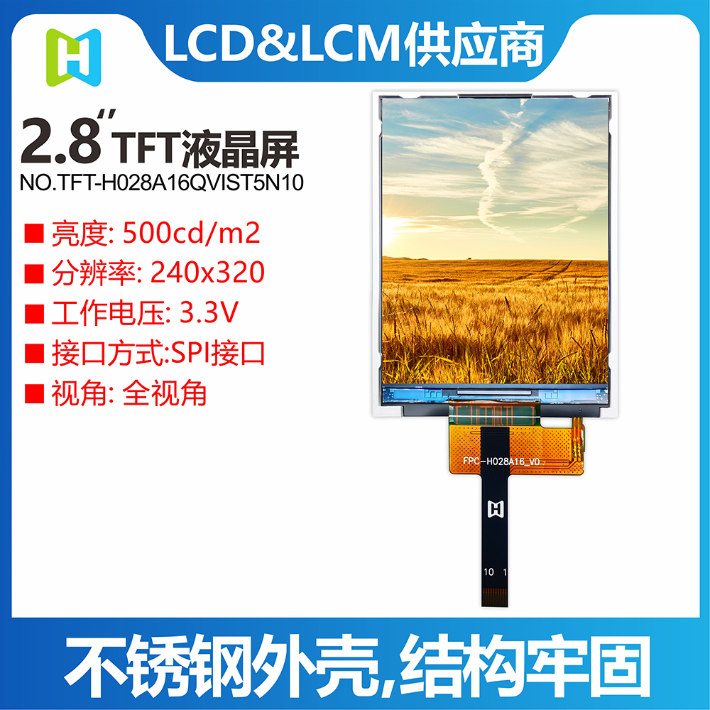 Tft-h028a16qvist5n10 is a 2.8-inch full-color TFT LCD module with a resolution of 240x320 pixels and an aspect ratio of 3:4. TFT module uses ST7789V driver IC, support MCU interface. The TFT module with IPS panel has the advantage of wide viewing Angle (left 80 degrees/right 80 degrees/upper 80 degrees/lower 80 degrees), typical contrast ratio is 800:1, and the module brightness is up to 500 nits (typical value). The operating temperature of the module ranges from -30 ° C to +80 ° C, and the storage temperature ranges from -30 ° C to +80 ° C.