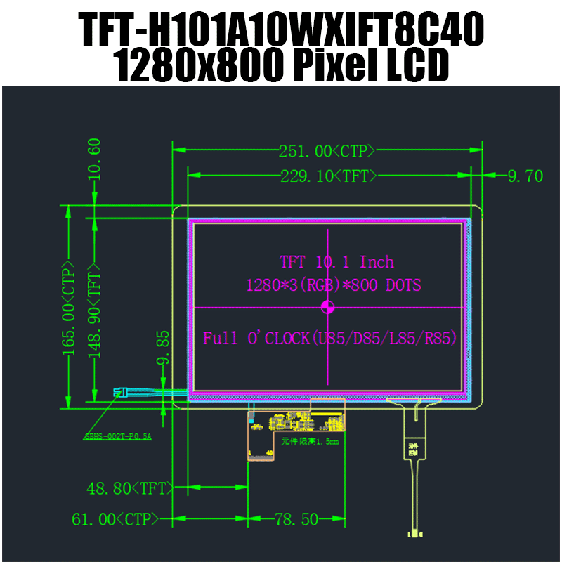 • Model : 10.1 inch 1280*800 resolution/IPS full viewing angle LVDS interface/TFT module/sunlight readable/capacitive touch screen/TFT-H101A10WXIFT8C40
