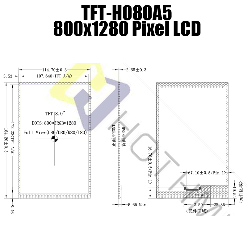 Featuring IPS technology, the TFT-H080A5HDIFT6N40 offers a wide viewing angle and excellent color reproduction, ensuring that all images and text are clear and easy to read from any angle. Its MIPI interface provides fast and reliable data transfer, while its JD9365 driver IC delivers exceptional performance and reliability.
