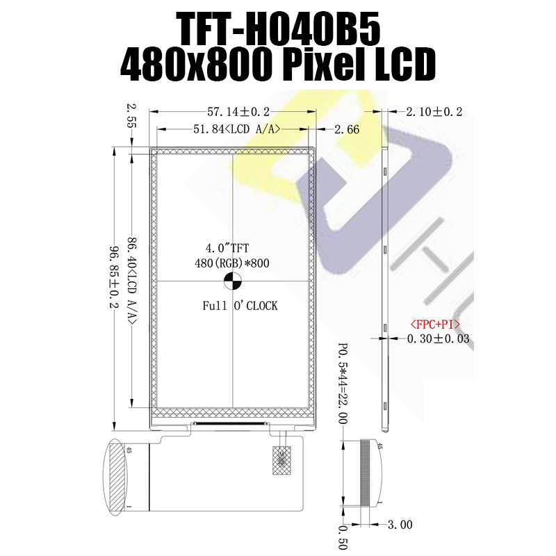 TFT-H040B5WVIIL4N45 | 4.0" IPS LCD Display | TFT LCD Display Manufacturer | 480x800 resolution | -20℃~70℃ | For Monitors