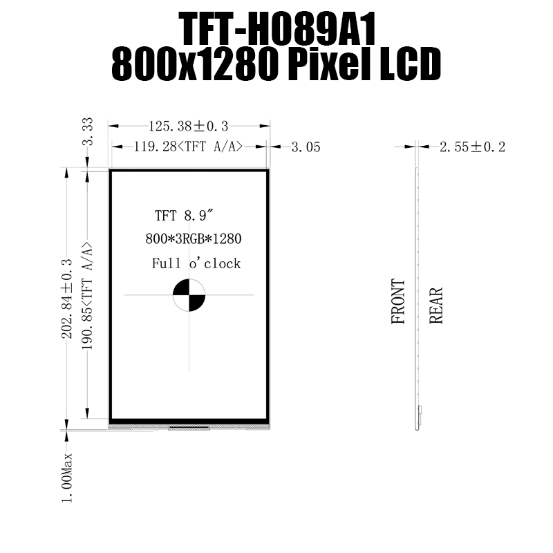 This 8.9 inch TFT LCD display has a 800x1280 resolution screen with IPS technology, which delivers sunlight readable brightness, better color reproduction, better image consistency, and better optical characteristics at any angle.This 8.9" display is RoHS compliant with MIPI interface, and does not include a touchscreen.