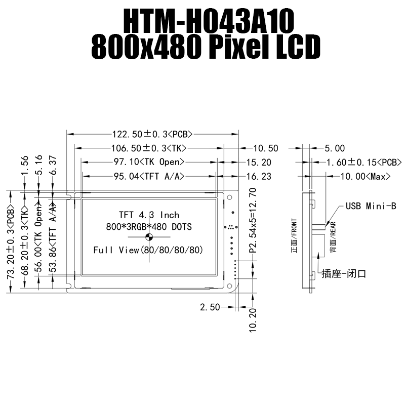 • Model : 4.3 Inch UART TFT MODULE TFT LCD 800x480 Display PANEL WITH LCD CONTROLLER BOARD HTM-H043A2-A5-UART