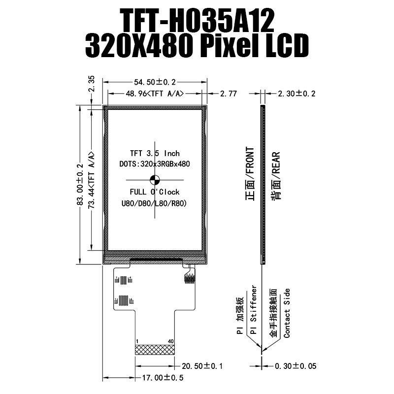 TFT-H035A12HVISTKN40 | 3.5" IPS LCD Display | TFT LCD Display Manufacturer | 320x480 resolution | -20℃~70℃ | FOR INDUSTRIAL CONTROL | Interface MCU | Sunlight Readable