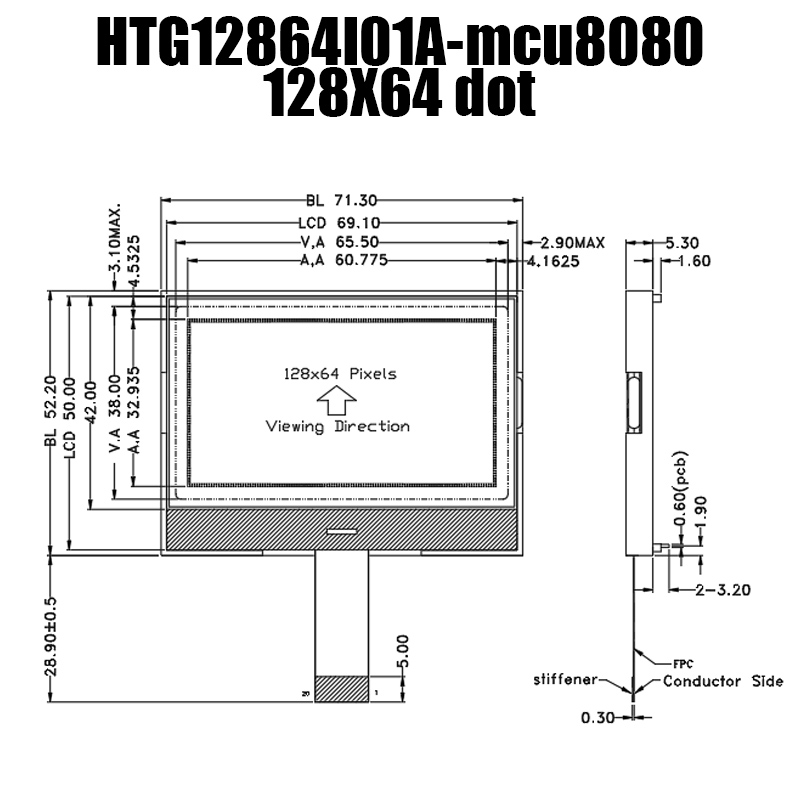 Introducing our HTG12864I01A-MCU8080 128x64 COG LCD Graphics Display Module with ST7567 Controller and White Light! Experience the perfect blend of superior performance and versatility with this monochrome graphic COG display. With its 128x64 dots resolution, our transflective LCD ensures sharp and clear visuals even in varying lighting conditions. The ST7567 Controller further enhances the display's efficiency, providing seamless and precise control over your content. Equipped with white light, this module guarantees optimal visibility, making it an excellent choice for any application requiring crisp black and white graphics. Whether you're working on a monochrome MCU project or looking to upgrade your existing setup, our display module is the perfect fit. Don't settle for less when you can have the best. Choose our 128x64 COG LCD Graphics Display Module with ST7567 Controller and White Light for your next project and witness the brilliance of high-quality visuals like never before.