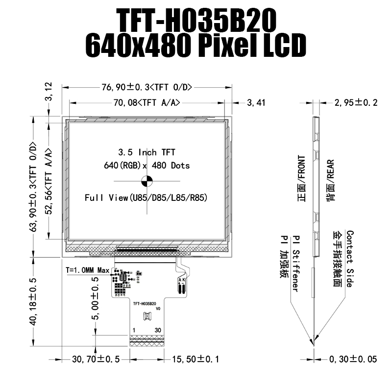 Introducing our cutting-edge 3.5 Inch IPS 640x480 Wide Temperature TFT Display Panel - TFT-H035B20VGIST4N30!