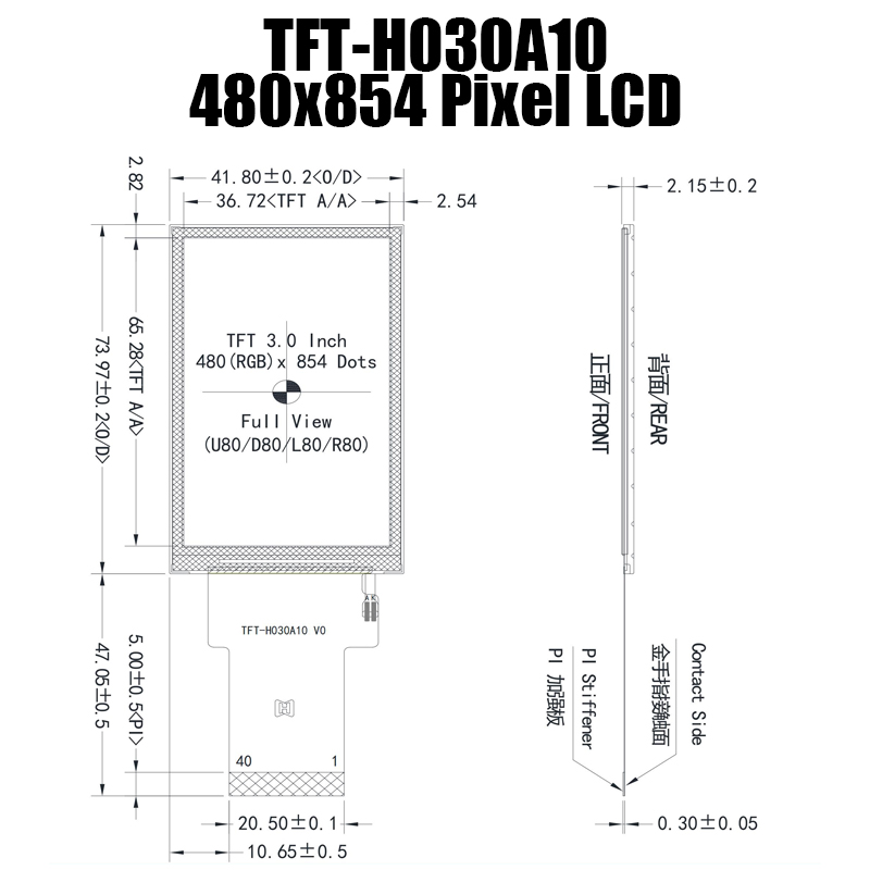 Introducing the TFT-H030A10FWIST3N40: A Cutting-Edge 3.0-Inch IPS 480x854 Wide Temperature TFT Display Panel with ST7703 IC for Industrial Computers