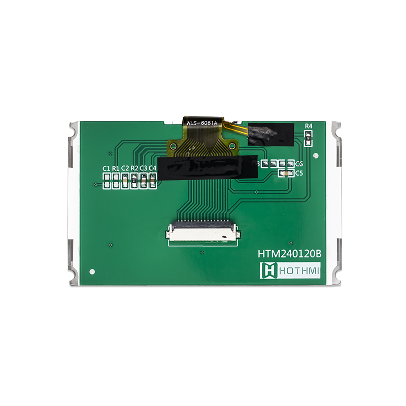 HTM240120B | Monochrome Graphics COG Module | 240x120 Pixels | Transflective LCD Display | Side White Backlight | FSTN (+) Front Display | Mounting Holes | Chinese, English, Russian, Japanese And Other Fonts To Choose From