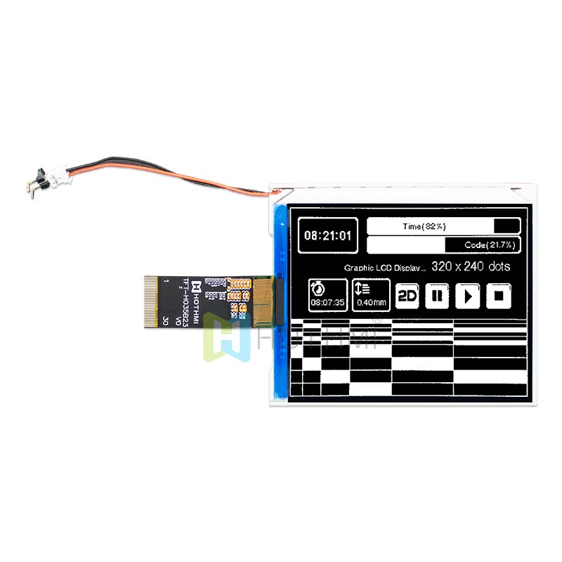 The 3.5-Inch MONO Black And White TFT LCD Display Is Specially Designed For Vehicle Instrumentation, With Excellent Performance And Adaptability. It Has A Display Resolution Of 240X320 Pixels, A 3.5-Inch Diagonal Size And IPS Full Viewing Angle Technology To Ensure Clear And High-Contrast Image Display From All Angles In The Car. The Overall Dimensions Of The Product Are 65.58x82.74x7.8 Mm, And The AA Size Is 53.28x71.04 Mm, Providing A Compact Design Solution For The Vehicle Space. The Backlight Intensity Is 350cd/M2, Which Can Adapt To Various Lighting Conditions In The Car And Ensure That The Information Display Is Clearly Visible.