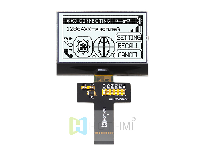 | 128x64 Russian lexicon Graphics COG LCD FSTN+ display with white side backlight HTG12864T02A-31W-SPI-FONT | COG | 128x64 |