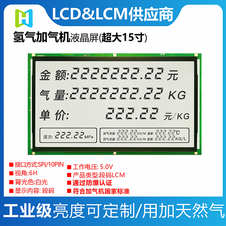 鑫洪泰HOTLCD專為加氣機研發(fā)了一款15寸大型段碼液晶顯示屏,這款屏不僅可以通過防爆認(rèn)證還可根據(jù)客戶需求定制任意結(jié)構(gòu)尺寸以及顯示內(nèi)容