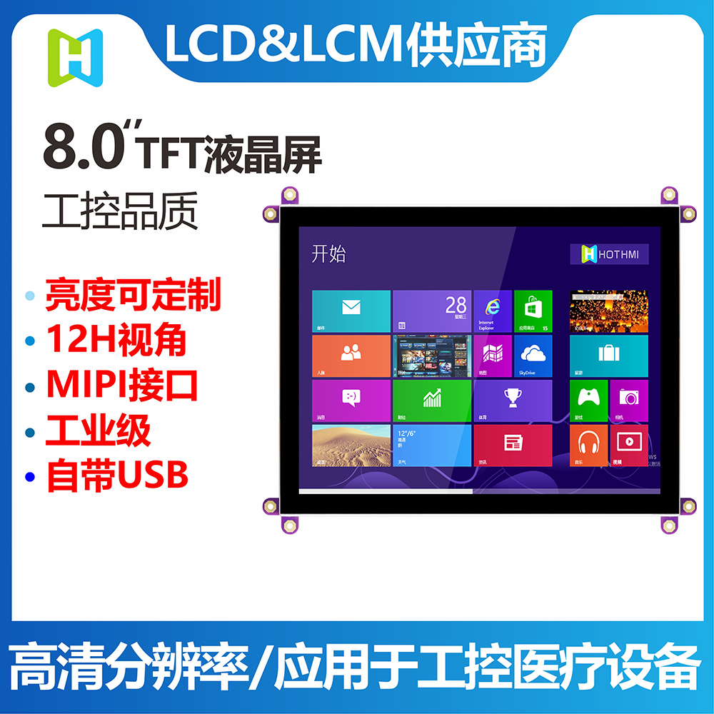 型號:8.0寸顯示器+USB電容觸摸/1024x768分辨率/全視角/VGA接口/TFT-080T61XGHDVUSDC