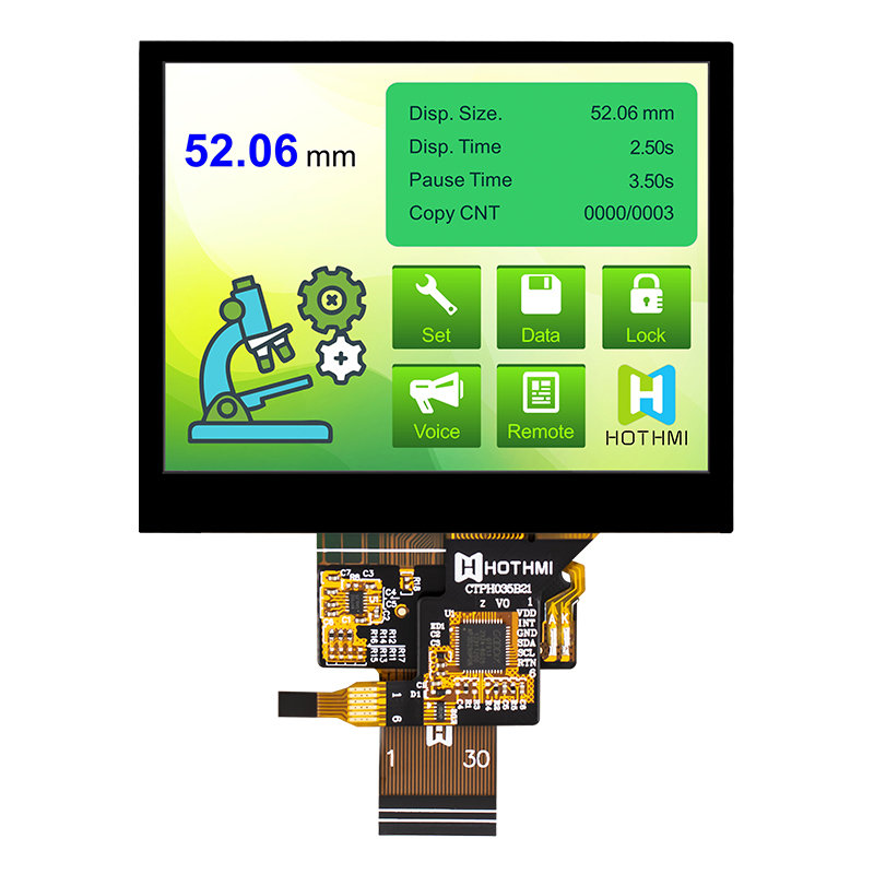 TFT-H035B16VGIST3C30-CTP | 3.5" IPS LCD | 640x480px 高分辨率屏幕 | MIPI 接口 | 可選配電阻/電容式觸摸屏/定制蓋板