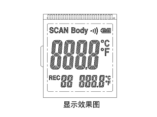 | 英文版額溫槍液晶屏LCD|紅外測(cè)溫儀顯示屏HTP68457英文版) | TN-LCD | SCAN8888CF |